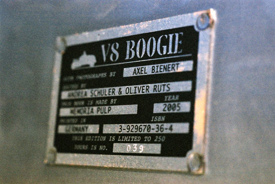 250 books of this volume have been published in a limited edition. It comes in a metal box made by Friedrich Bublitz GmbH, Berlin, including a hand print signet by the artist and a bonus CD released by Voodoo Rhythm, CH-Bern.